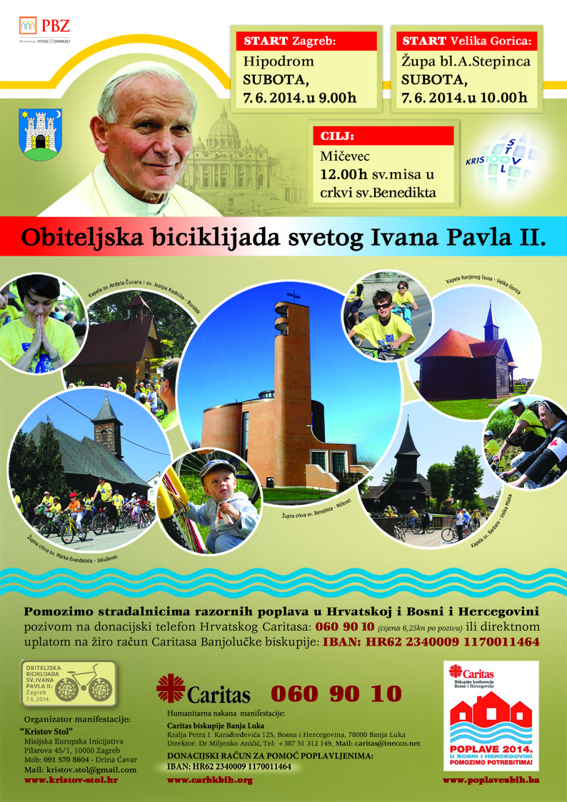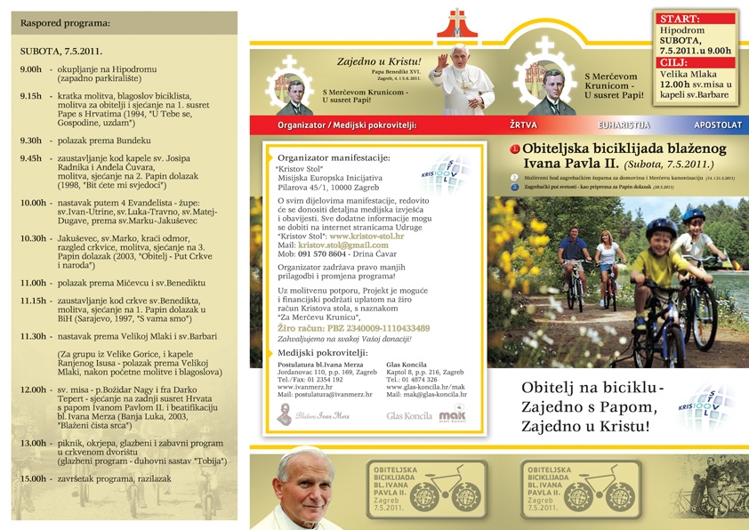 Kristov Stol - Misijska Europska inicijativa, povodom beatifikacije Pape Ivana Pavla II, i u sklopu priprema za 1. pohod Pape Benedikta XVI Hrvatskoj, i Nacionalni obiteljski dan, organizira - Obiteljsku biciklijadu bl. Ivana Pavla II. u subotu, 7. svibnja 2011. u sklopu svibanjske manifestacije Merčeva Krunica.