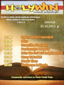 "Prvi u nizu Holywin-Noći otvorenih crkvi održava se u organizaciji Frame Uskoplje.Cilj Noći otvorenih crkvi je obnoviti običaj okupljanja na molitvu i bdjenje uoči velikih katoličkih svetkovina. Holywinom se želi mlade uoči Svih svetih pozvati na radosno zajedništvo, bdjenje i molitvu, a kroz duhovnost - mladima pokazati da i oni mogu, štoviše da su pozvani biti sveti. Želi se pokazati da su i sveci bili obični ljudi, slabi i grešni, ali i da je potrebno biti ustrajan u vjeri, strpljiv, ponizan, svjedočiti svoju vjeru drugima, ljubiti..."